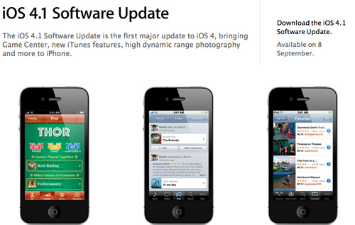 Over the past weekend, the Apple site in the UK briefly mentioned that the iOS 4.1 release date would be September 8 which puts it at this Wednesday. Shortly after though the date was pulled with a Coming Soon message being in place.
