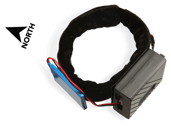 The North Paw Directional Anklet is a device that you attach to your ankle. Its only purpose in life is to vibrate when you are facing north.