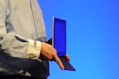 The next tablet on show was the Eee Pad Transformer. This is similar to the Eee Pad Slider in that it has a QWERTY keyboard.