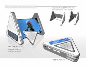 Another beauty concept idea has been given to the world by those at YankoDesign. This amazing looking device it a unique trangle MP3 player and then opens up to be a video player. You flip it upside down, pull the 2 halves apart and the OLED screen uncoils which then a hinge locks it in to place. Working as a video player you can then remove the MP3 control and use it as a remote control.