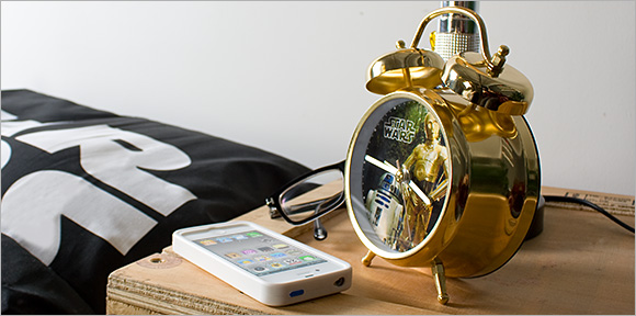 Designed for Star Wars fans, these 3 clocks will wake you up to various quotes from either C-3PO, a Stormtrooper or Chewbacca.