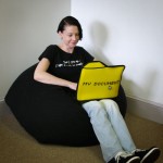 The case it’s self is bright yellow to reflect what it looks like on the desktop. The font used is pixelated to give it that computer look. The laptop bag can hold laptops with screens up to 15.4″ in size.