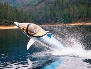 The dolphin boat when controlled by a pro will have you doing twists in the air, rolls and double rolls… just watch the landing though as it can be quite rough. The 3/4 inch thick glass will protect you when you enter the water at high speeds and the butterfly valve also closes while in water so that you do not get flooded. The seabreacher costs around 40000 pounds although it is just a custom machine at the moment.