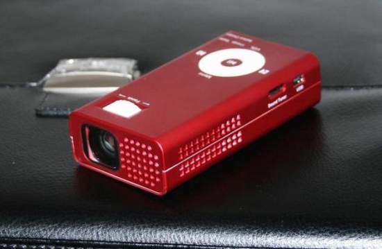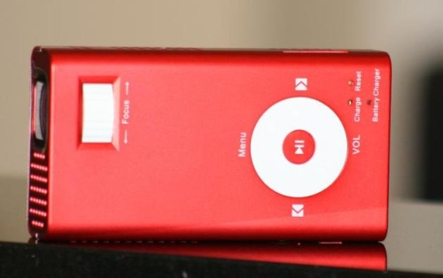 This projector has a capacity of 1GB on internal memory which can be expanded another 4GB by microSD. It appears that the makers are wanting to create this projector as a standalone projector where you store movies/presentations on it rather then connecting it up to a phone or laptop. The iPod like scroll wheel that can be found on top also ads to this theory in that you can just sit it on a desk and hit play.