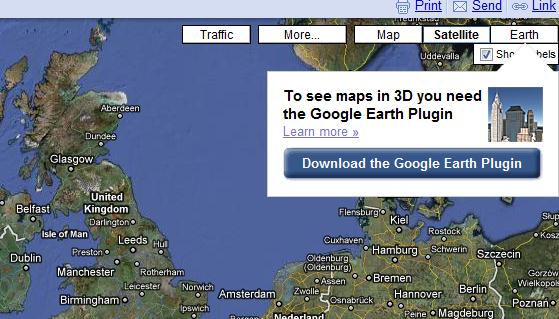 To access the feature you can just visit maps.google.co.uk and on the right of the screen you should see a tab saying Earth. Click on this and it will ask you to install a plugin. Once installed you can then navigate around 3D imagery in a similar way to how Google Earth works.
