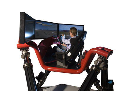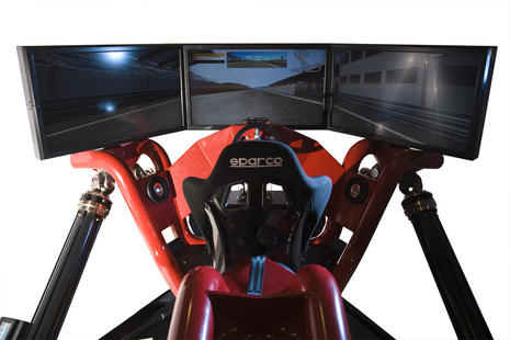 The £120k simulator comes with either 3 42 inch screens or stereo projectors to wrap the image around the user providing a more realistic simulation. Due to the hefty price you also get a number of options that can see the simulator configured for single or 3 seat setup along with open or closed cockpits as well as the optional body kit.