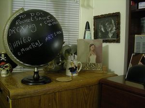 Sometimes a chalkboard is just not enough. Some want to write on the world and have a globe to store their ideas. However, I doubt anyone has ever seen a globe chalkboard for sale. MakeZine have created their own by using a regular classroom globe, chalkboard paint, Spackle, newspapers, Gesso and a coat hanger.