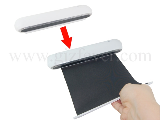 The Auto-Scroll Mouse Pad is another crazy gadget from GizFever that makes you wonder why it exists. The Auto-Scoll feature appears to be button activated to being the mouse pad back in to the casing. The casing of the mouse pad also acts as a 4 Port USB Hub and also has a “Blue Moody Light” for added effect.