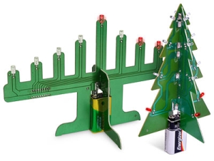 The alternative available from ThinkGeek is the Motherboard Menorah that works on a similar principle but has 9 LED’s instead which can be controlled by a DIP switch.