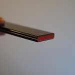 The front of the phone is covered in tempered glass and has a nice glossy shine to it. There are no buttons on the front of the device and it’s just a smooth piece of glass that has just the ear speaker cut out. Both the top and bottom ends of the phone are accented in a vibrant red while the sides continue on the glossy black look of the front along with a thin silver strip that runs the length of the phone on each side. On the back of the phone the black gloss look is continued with just a small cut out for the 5 megapixel camera lens, flash and a small microphone.