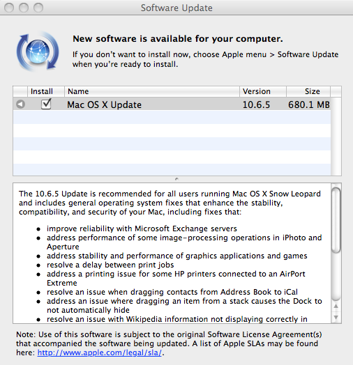 The 10.6.5 Update is recommended for all users running Mac OS X Snow Leopard and includes general operating system fixes that enhance the stability, compatibility, and security of your Mac, including fixes that: