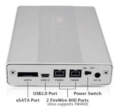 OWC have created a new portable harddrive that it claims to be the worlds first “quad interface”. The BUS powered drive can be connected to a PC using four methods which are eSATA, USB 2.0 and two Firewire 800 ports with support for Firewire 400.