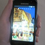 Turning on the Galaxy S is easy, there are really only two options, a small control button on the right side of the phone which would have been better placed on top beside the sliding USB port door, or what appeared and eventually turned out to be, the rocker type volume control on the left. Once the initial wallpaper appears there’s a moment similar to the recent Staples commercials advertising low prices, ‘Whoa! That’s a crisp image!, while the iPhone 4 may cram in the most pixels per square inch of screen realty it does not match the vivid quality of the Samsung AMOLED equipped Galaxy S.