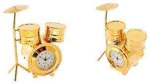 This gold (silver also available) clock is shaped like a set of drums. Inside the drums you will find a quartz clock embedded which is accurate to about +- 7 seconds per year. The drum set is made of metal and is gold or silver plated. Size: dia = 21mm, drum size is L50 x W28 x H75 mm.