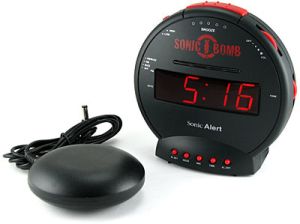 If you are a heavy sleeper then the Sonic Bomb Alarm clock is for you. The clock features an adjustable volume alarm which can shout out at 113 decibels. Like me, you are now wondering what that means. Basically a jackhammer is about 100 decibels. I hope that puts it in to perspective for you. Not only is the sonic bomb a noisy clock, it is actually a shaking clock by the way of a bed shaker which you put under your matress. Having this ultra mean combination of noises and vibrations there is no doubt that this would wake up the heaviest of sleepers.