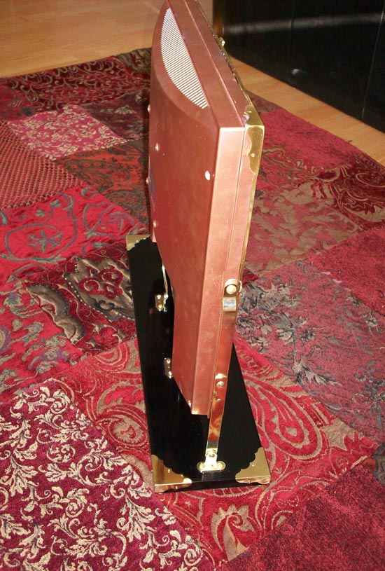 A standard LCD monitor has been given a new look in the shape of Steampunk. The LCD monitor is a regular 19″ from Envision and has had added a 1/8″ solid brass frame, corners and more frame details to give it that old fashioned modern weirdish look. Brass feet can be found holding it up along with brass plated brackets and solid brass screws. Check out the full range of pictures after the jump.