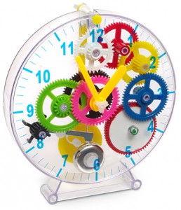 The clock is transparent allowing you to see all the inner workings and gears to see how it all works. Each part of the clock serves a purpose to teach you what it actually does and why that part is there.