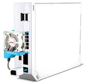 I have not come across a burnt out Wii yet, or seen any heating issues mentioned anywhere, but that doesn’t stop Nyko introducing the Wii Intercooler. The device attaches to the back of the wii and plugs in to the power input which then allows the power cord to be plugged in to that. The fan then positions over the vent allowing the Wii to cool down (although it runs fairly cool anyway).